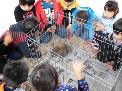 生活科の「いきものとなかよし」の学習で,うさぎのチョコの様子をみんなで観察しました。「鼻がピクピク動いているよ。」「触るとふわふわしているね。」「あったかいよ。」などなど,みんなチョコの様子を手や目を使って一生懸命観察しました。この後,獣医さんにうさぎや他の動物についていろいろなことを教えていただく予定です。もっともっといきものとなかよくするための方法をみんなで考えていきたいです。