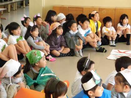 明日は,いよいよ,学習発表会。1年生にとっては,初めての学習発表会なので,みんなどきどきわくわくしています。今日,最後の練習をし,その後,本番と同じようにリハーサルも行いました。今までの練習の成果を発揮し,一人ひとりが力いっぱい演じることができることを,信じています。みんな,頑張ろうね!