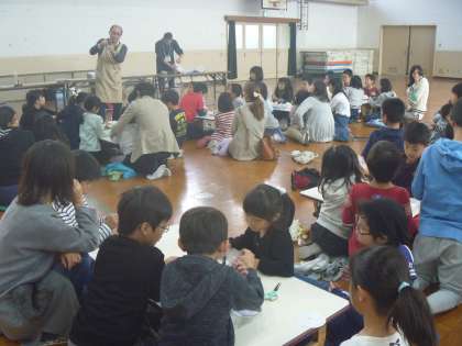 4日(土)に科学教室が行われました。連休中にもかかわらず,たくさんの子どもたちが参加しました。内容は,いろいろな穴のあき方をしたペットボトルから,水が出るか出ないかを考えるものでした。また,もの作りもしました。色が浮かび上がるCDゴマを作り,科学の不思議を感じることができました。