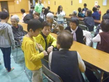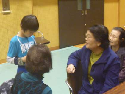 会場に到着し,楽しみにしていた交流会がはじまりました。そして,自己紹介タイムです。将来の夢,好きなことなどもお話して,お年寄りと親しくなることができました。