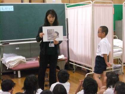 11月の保健指導は「正しい姿勢について」でした。背中を曲げることで,視力の低下や骨の異常につながることが分かりました。お話を聞いた後,教室ではいつもより背筋をぴんと伸ばして学習できました。
