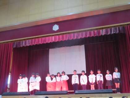 最後のグル—プは,友達グループでした。運動会で友達と協力してがんばったデカパンリレー。最初はうまくできなかったけど,どうすれば速くできるかをみんなで考えました。そしてどんなことを友達と協力してかんばったことを劇にして伝えました。