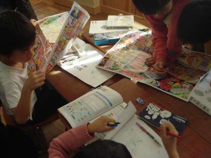 班で協力して調べていました。