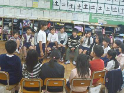 今日は雨が降り,運動場が使えなかったので,教室でみんな遊びをしました。係のみんなのルール説明のあと,楽しそうにゲームをしていました。ますますクラスの仲が深まっています。