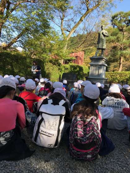 最後に田辺朔朗の像を見て,学校に戻ってきました。