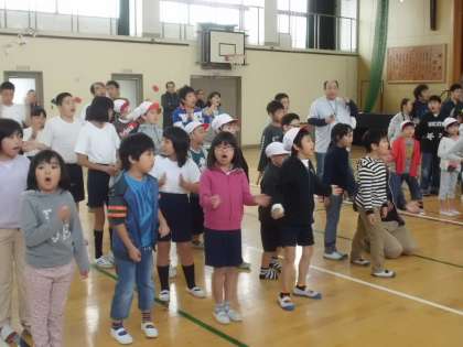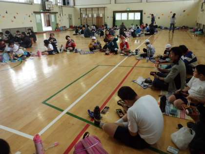 なかよしフェスタの日のもう一つのお楽しみのお弁当の時間です。他の学校のお友だちとも一緒に輪になって,おいしくいただきました。