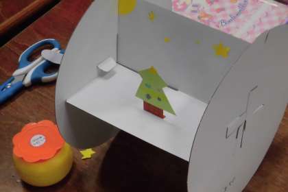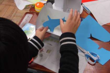 図工科の学習で,「コロコロゆらりん」の作品作りに取り組んでいます。まず,円と円柱を組み合わせた「転がる形」を作り,それに色紙や色画用紙を使い,飾りをつけていくのです。子ども達は,前もって「設計図」を描いており,自分のイメージ通りになるよう,一生懸命はさみやのりを使い,作っていました。転がると,少しずつ場面が変わるような工夫をしたり,円の部分に折り紙をつけたりと,世界に一つしかない作品に仕上げようと,頑張っていました。完成が楽しみです。