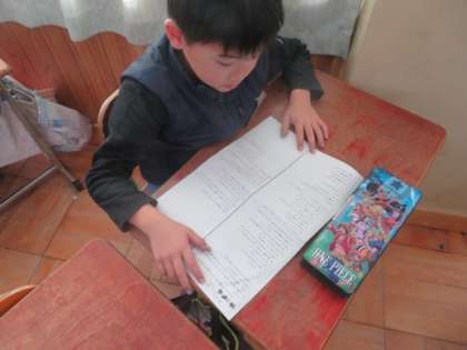 ちいちゃんのかげおくりの「かげおくり」をする二つの場面を比べて読みました。話を読んで,言葉や表現に着目して,二つの場面の同じところや違うところを見付けながら読みました。