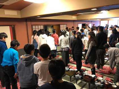 二日間お世話になった旅館を後にします。お風呂や食事,部屋で素敵な思い出を作ることができました。お世話になった旅館の方々にしっかりと感謝の気持ちを伝えてました。