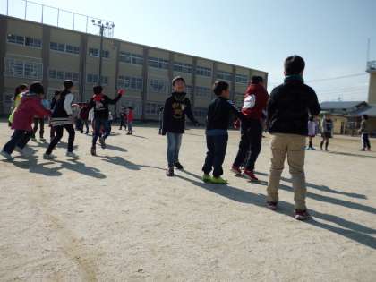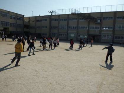 今日はみんな遊び。遊び係の人がみんなでドッジボールで遊ぼうと誘ってくれました。キャーと強いボールから逃げまどう姿や,友達からボールを譲ってもらってうれしそうに投げる姿が見られました。