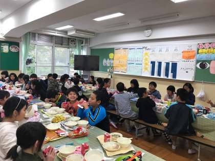 いつもとは違う部屋で給食を食べることができて,子どもたちはとても嬉しそうでした。