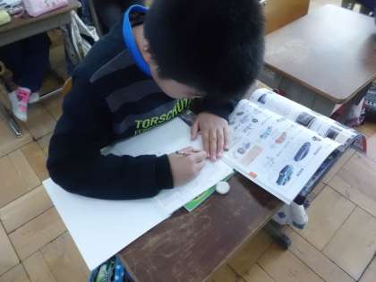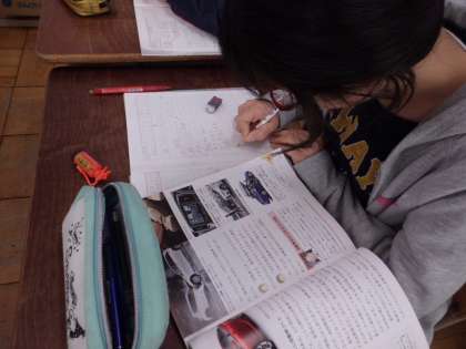 社会科「自動車をつくる工業」では,消費者のニーズとして「人や環境にやさしい」が出てきたことをつかんだ子どもたち。どんな自動車が作られているのか,教科書や資料集で調べていきました。