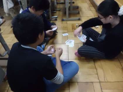 雨の日はあちこちでトランプを使ったゲーム大会が開かれています。一人で読書の世界を楽しむ子も見られますよ。
