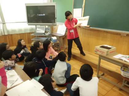 理科「流れる水のはたらき」では,川の石がどのように削られていくのか,絵本を使って学びました。読み聞かせにかぶりつく子どもたちです。