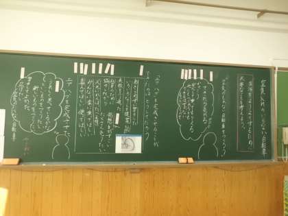 道徳では「空気入れのいらない自転車」のお話から,生活をよりよくするために必要なことを考えました。「あきらめない」「相手のためにがんばる」など,委員会活動や係活動でいかしていけそうな考え方をもつことができました。