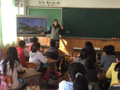 新しいALTの先生である「モンタナ先生」と英語の学習をしました。初めてのモンタナ先生の授業ということもあり,最初はモンタナ先生の自己紹介を聞きました。その後は質問をしたり,一緒に英語のゲームをしたりして楽しく英語の学習を進めていきました。