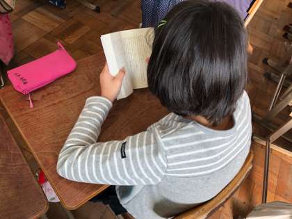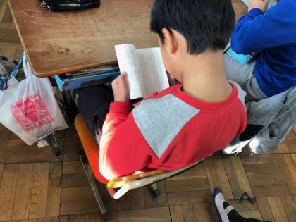 朝読書の様子です。一人ひとりが静かに読書を進めています。読んでいる本のジャンルは色々ありますが,本の世界に入り込んでいる人がたくさんおり,とてもいい雰囲気で朝読書ができています。