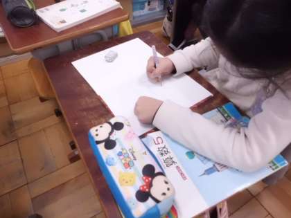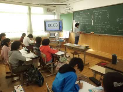 算数科「人文字」では,Fの形をした人文字に,どれだけの人が並ぶのかを調べました。Fの形を一直線に変えて,工夫して求めることができました。
