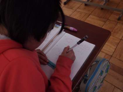 算数科では「復習」にチャレンジ。練習問題に集中して静かに取り組む子どもたち。さすがです。