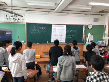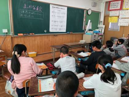 音楽の授業で「まっかな秋」を歌いました。歌詞の言葉や,曲想にふさわしい歌い方を考えて歌いました。やさしく歌ったり,なめらかに歌ったりと,曲想に合わせて歌うことができました。