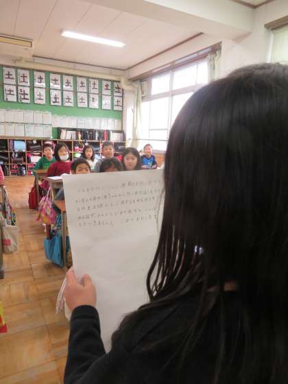 代表委員の児童が物を大切にする取組の説明に来てくれました。今回はくつとかさを大切にしようということで,大切にするポイントを教えてくれまいた。
