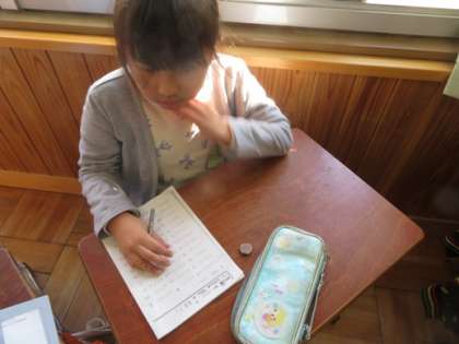 どんどんタイムでは算数の計算問題にチャンレジしました。全ての問題を解き終わるのに何分かかるかはかりました。たくさん問題がありましたが,正確にはやく解こうと頑張っていました。