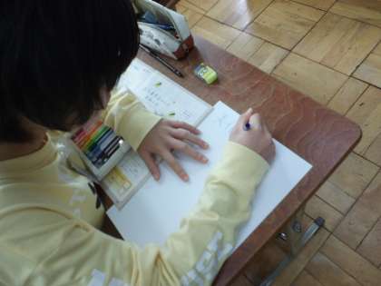 書写では,いろいろな筆記用具の特長のちがいについて考えました。その後,それらを使い分けて,見やすい掲示ポスターを作っていきました。