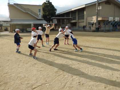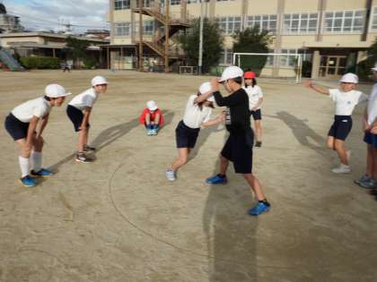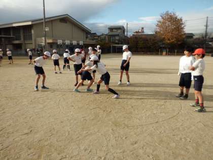 4年生の体育の学習に「すもうあそび」があります。ケンケン相撲や押し相撲をして力比べのように楽しんでいます。立ち合いがとても鋭い友達がいて,あっという間に相手を土俵の外に出していました。どのグループも大変盛り上がっていました。