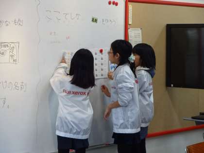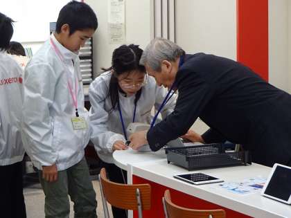 富士ゼロックス京都では,ビジネス名刺を作成したり,一人ひとりオリジナルの名刺を作成したりできます。タブレットの操作をわかりやすく,丁寧に教えている姿が印象的でした。