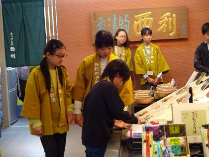 京つけもの西利では,お漬物を販売を行いました。また,販売するだけでなく,試食もでき,多くの子ども達が買い物に行っていました。西利で働く子ども達は,一つ一つの商品の原料などを丁寧に説明していました。
