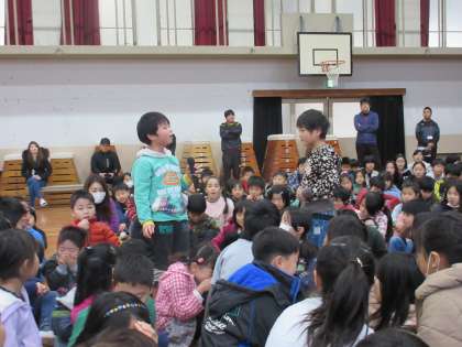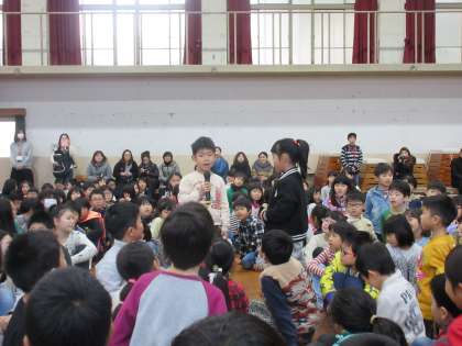 司会の子は初めてマイクを持ってインタビューにいくのをとても楽しみにしていたので,たくさんの人が感想を言うために手を挙げてくれると,ワクワクしながら喜んでマイクを渡していました。