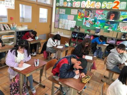 漢字の10問テストを行いました。漢字の10問テストは,宿題でしている漢字の書き取りから出題されます。子どもたちは宿題を頑張っているため,スラスラと解けている人がたくさんいました。