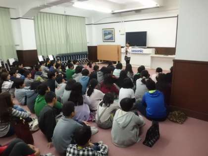 オリエンテーションに引き続き,広場では第1回全体ミーティングが行われました。各ブースの代表者があいさつをした後,区長のあいさつがありました。だれが自分のブースの代表者なのか,知ることができました