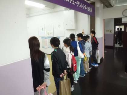 全体ミーティングの後は,各ブースに出勤。姿勢を正して,大きな声であいさつして入りました。