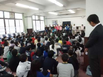 ランチタイム後には第2回の全体ミーティング。各ブースの代表者が自分のブースの宣伝をしました。