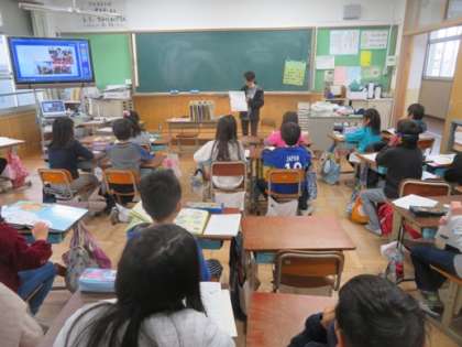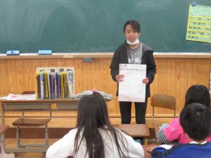 児童会からの声かけで第2回ものを大切にしようの取組が始まりました。代表委員の児童がポスターを持ってそのことを伝えに来てくれました。上靴がそろっていると気持ちがいいです。
