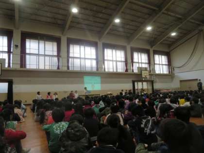 月曜日の朝に体育館で吉祥院タイムを行いました。今回の発表学年は1年生でした。発表のテーマは,「がんばったこと,がんばっていること」でした。自分たちの1年生のころを思い出しながら発表を聞いていました