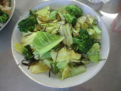 写真は,キャベツと昆布のごま和えと