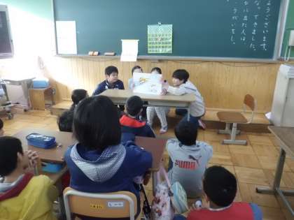 後期の係活動も本格的にスタート。ブック係は紙芝居の読み聞かせに挑戦。練習の成果を出して,みんなをお話の世界に引き込んでいました。