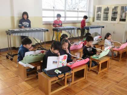 今日は音楽室で合奏と音楽づくりの学習をしました。