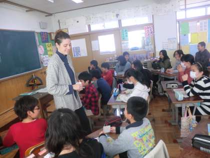 する学習をしています。今日は,まずALTの先生