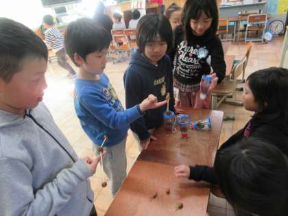 それぞれのクラスで前半にお店をするグループと,後半にお店をするグループに分かれ,お店をしない時は,3クラスのお店をお客さんとして回ります。