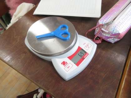 理科の学習で,ものの重さを調べました。最初にはかりの使い方を学びました。はかりは,水平なところにおいて使います。そしてハサミや鉛筆など,いろいろな身の回りのものの重さを調べました。