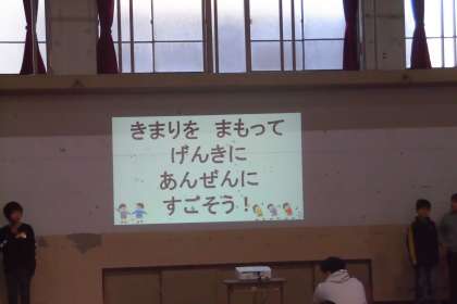 冬休みが終わって,学校に元気な子ど達の声が帰ってきました。今日は朝会がありました。校長先生からは,「人・物・時間を大切に」「やさしい心・正しく強い心」という言葉について,みんながどう意識できていたかお話がありました。また,4月からは,それぞれが一学年ずつ進級するにあたって,この3カ月の過ごし方を大切にすることについても,お話がありました。みんな背筋をピンと伸ばし,しっかり話を聞き,新しい1年のよいスタートが切れたようです。その後,運動安全委員会が,寸劇を入れながら,校舎内の安全について発表をしました。