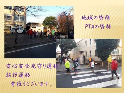 地域やPTAの皆様も,早速,子どもたちの見守り活動や挨拶運動をしてくださいました。寒い中,また,お忙しい中,本当に有難うございます。