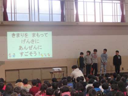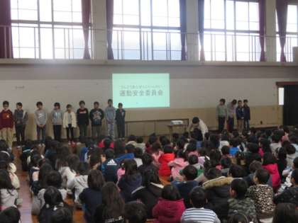 朝会で,運動安全委員会の発表がありました。廊下の歩き方を劇にして分かりやすく発表してくれました。廊下は右側を歩きましょう。