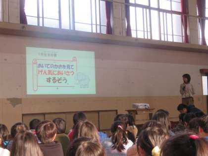1月の生活目標は,相手の顔を見て元気にあいさつするぞうです。気持ちの良い挨拶は心がすっきりしますね。