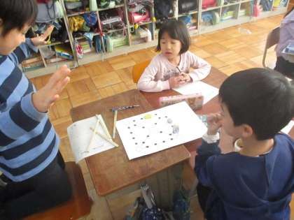さいころではなく,棒を使ってたのしく掛け声をかけながら遊んでいました。