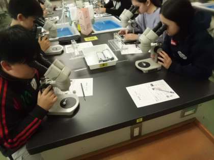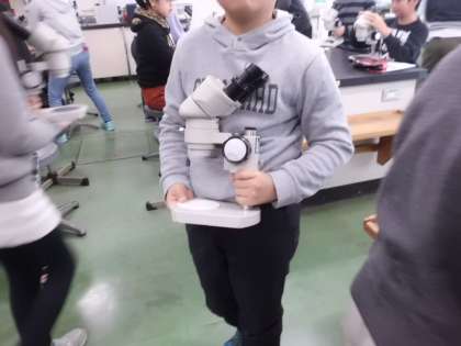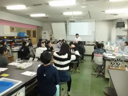 環境実験学習では,「アルテミア」という生物について観察しました。体のつくりや卵のひみつなどを調べ,新たな発見をすることができました。