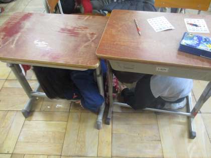 頭をしっかり守る様子や,すみやかに避難する様子が見られました。